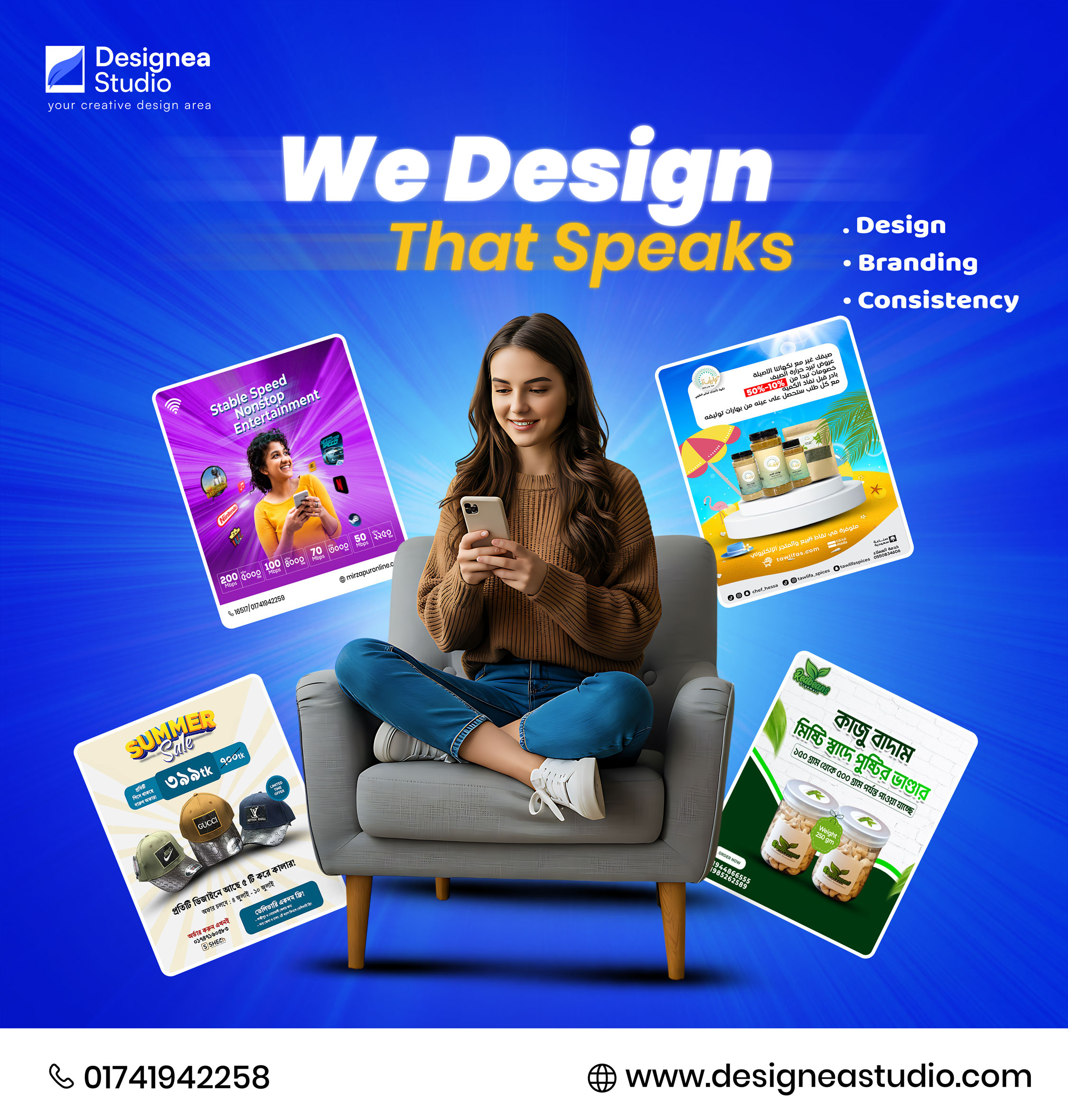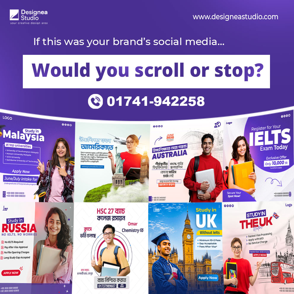 At Designea Studio, we create visually engaging and high-converting social media designs that help brands grow online. From daily posts to ad creatives, we design content that captures attention and communicates your message effectively